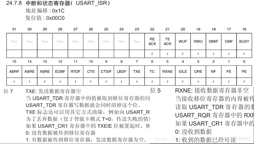 while(!(USART1->ISR &(1<<7))); //等待发送寄存器空