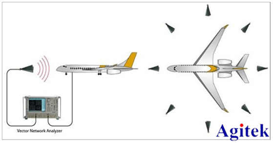 但是,并非所有的VNA测量应用场景都是这种稳定的环境。大尺寸的DUT和OTA测试通常需要更长的测试电缆,才能将VNA连接到被测设备或对应的测试天线上,而且大多数应用还需要移动和重新连接对应的接口电缆,从而影响测量的稳定性,比如飞机射频屏蔽效能和传播测试应用等(如图1所示)。