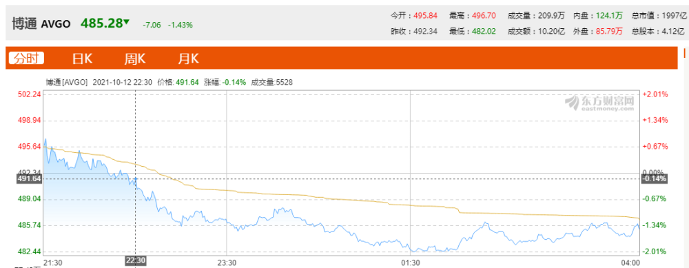 美东时间10月12日,博通股价开盘后即迅速下跌,当天共跌1.43%。德州仪器当天大跌2.53%。苹果声学器件供应商瑞声科技跌1.4%。苹果股价微跌0.91%。