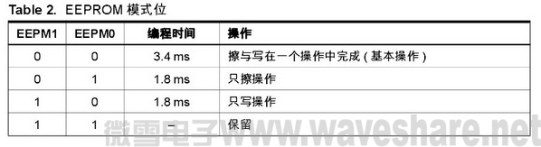 标定的振荡器用于 EEPROM 访问定时。 Table3 为 CPU 访问 EEPROM的典型时间。