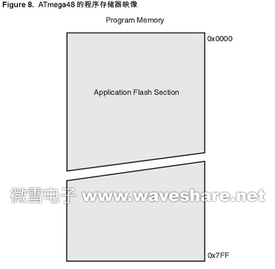 以下分别是ATmega48 和 ATmega88、ATmega168 的程序存储器映像示意图。