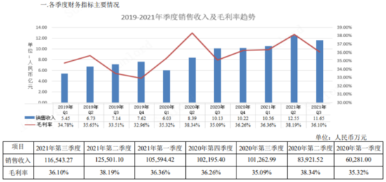 2021第三季度,顺络电子实现销售毛利42,071.83万元,对比上年同期增加了18.39%。2021年初至第三季度末实现销售毛利128,398.41万元,对比上年同期增长了44.27%。