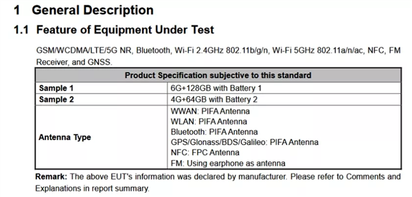 FCC认证信息显示,小米POCO M4 Pro型号为21091116AG,提供了4GB+64GB和6GB+128GB两种选择,支持NFC。