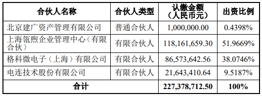 公告显示,合伙企业认缴出资总额为2.27亿元,格科微上海拟作为有限合伙人以自有资金出资8657.36万元,认缴出资比例为38.07%。基金的投资标的为瓴盛科技股权。执行事务合伙人应于合伙协议生效之日起 6 个月内完成基金对瓴盛科技的投资,取得瓴盛科技7.042%股权。