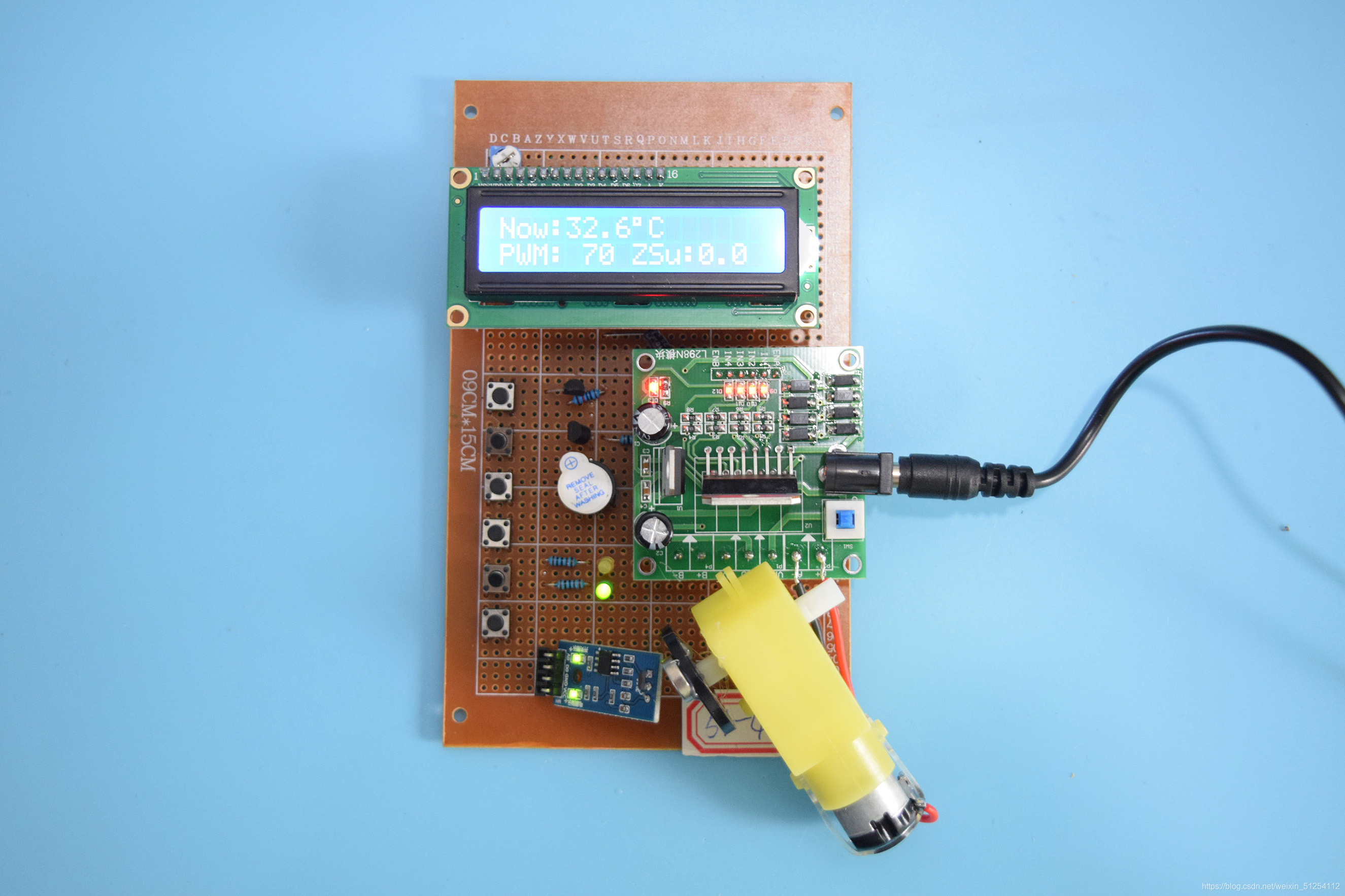 3、通过液晶显示温度、PWM档位值、速度。