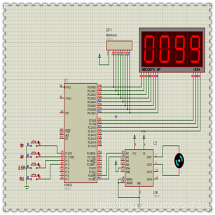 设计输入部分:这一模块主要是利用带中断的独立式键盘来实现对直流电机的加速、减速以及电机的正转、反转和急停控制。