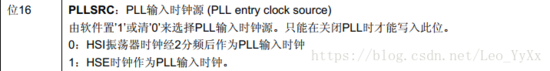 RCC_CFGR的第16位PLLSRC来选择PLL时钟源的输入。
