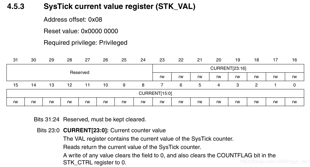__IO uint32_t VAL; /*!< Offset: 0x08 SysTick Current Value Register */