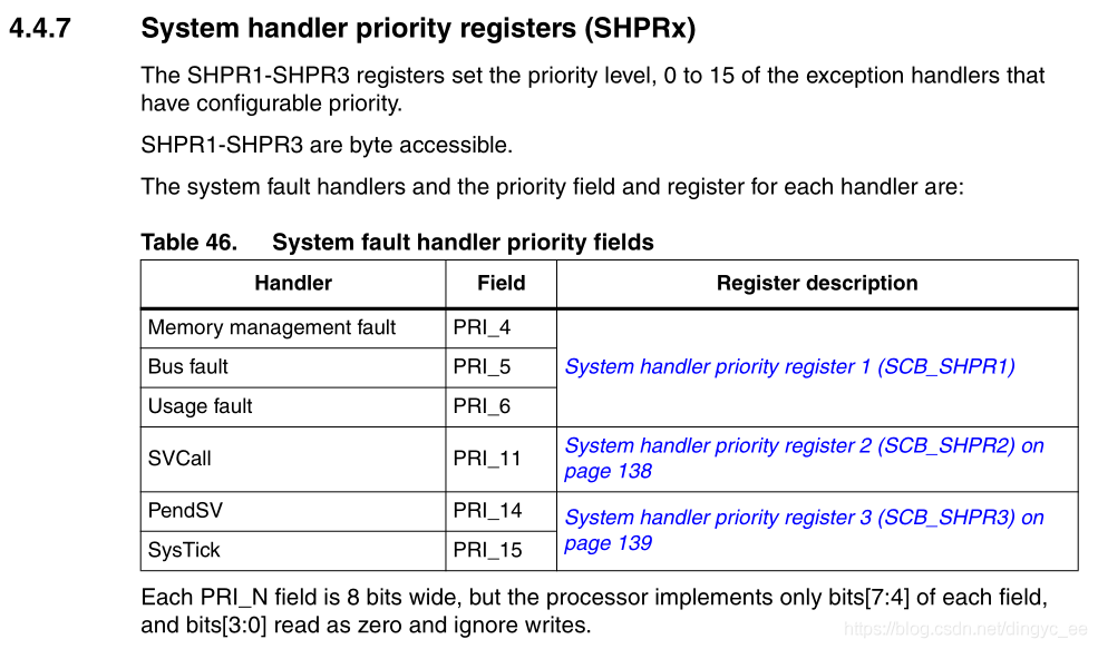当SysTick和外设同时产生中断时,根据4位数的数值大小来解析中断优先级的高低。
