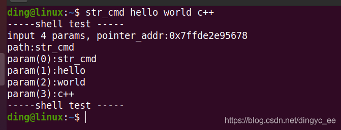 #include int main(int argc, char ** argv) { printf("-----shell test -----rn"); printf("input %d params, pointer_addr:%prn", argc, argv); for (int i = 0; i < argc; i++) { if (0 == i) { printf("path:%srn", argv[0]); } printf("param(%d):%srn", i, argv[i]); } printf("-----shell test -----rn"); return 0; } 编译,添加可执行权限,设置PATH环境变量添加到指定的路径。 sudo gcc -o str_cmd str_cmd.c sudo chmod +x str_cmd # 环境变量添加路径 export PATH=$PATH:/home/ding/c_cmd 现在在shell中输入str_cmd,运行一下试试 command not found的原因:1 PATH指定的路径中无此程序;2 它不是可执行的程序。 2 命令提示符和命令格式 1 命令提示符 2 linux命令格式:命令 [选项] [参数] eg:ls -l /home,其中,命令这部分是肯定存在的,选项是以“-”来指明的,选项和参数不一定存在。 3 家目录。 ~ 表示家目录; . 表示当前路径; .. 表示上一级路径; - 表示上一次路径; 4 mkdir dir0:创建目录; mkdir -p dir0/dir1:连续创建多级目录(父目录和子目录)(-p:parent); 5 rmdir:删除目录;