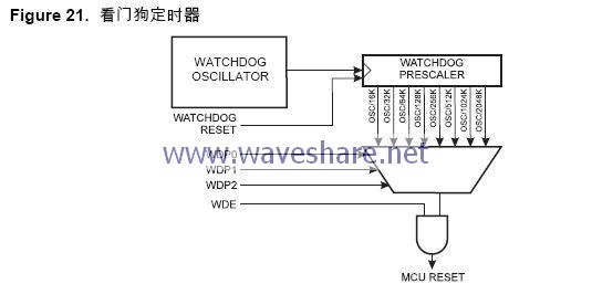看门狗定时器还可用来产生中断。这在使用看门狗将系统从掉电状态唤醒是非常有用的。