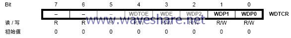 · Bits 2..0 – WDP2, WDP1, WDP0: 看门狗定时器预分频器2, 1 和 0