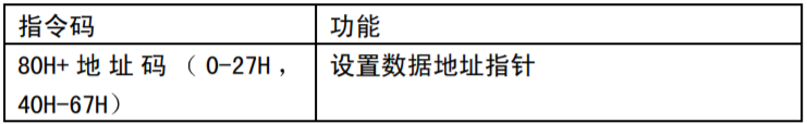 说明:该指令最高位为1,低七位为RAM地址,十六进制0x80+地址码,在程序中用 (0x80 | 地址码)来表示该指令。在读写程序中先设置地址,然后进行数据的读写操作。