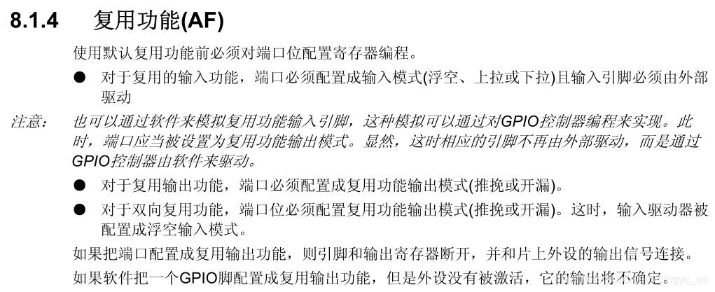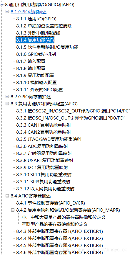 在stm32中文参考手册的第8章,有专门提到端口复用的章节如下