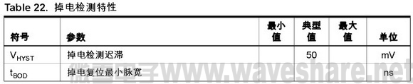 如果 VCC 一直低于触发电平并保持如 Table20 所示的时间 tBOD,BOD 电路将只检测电压跌落。