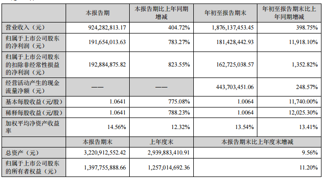 10月21日晚间,国科微公告称,第三季度实现营收9.24亿元,净利润1.9亿元,同比增长783.27%;前三季度实现营收18.76亿元,净利润1.8亿元,同比增长11918.1%。