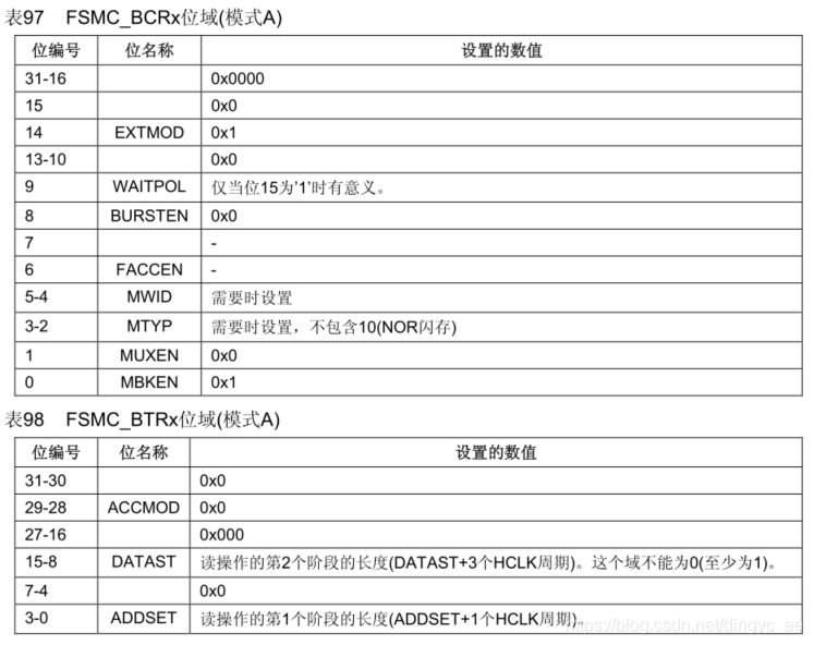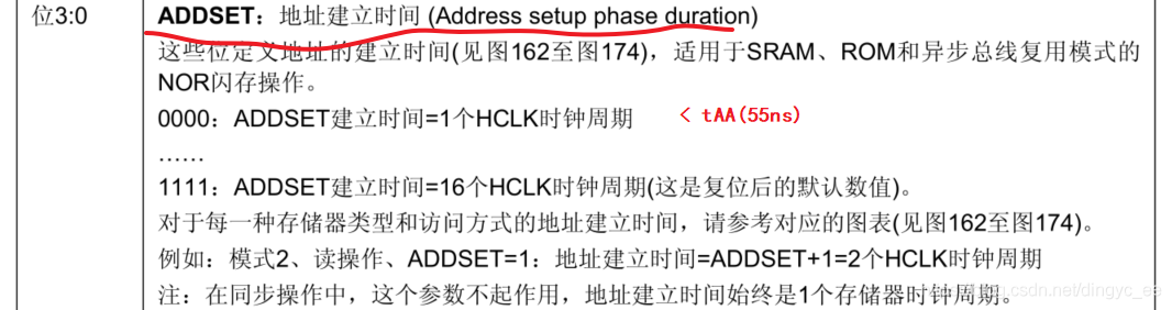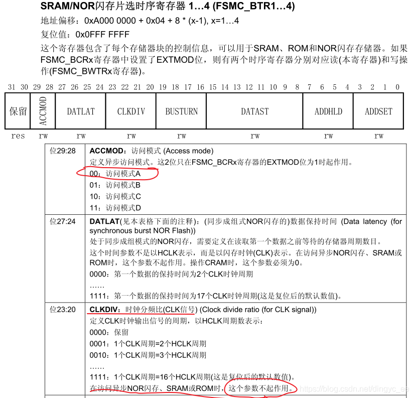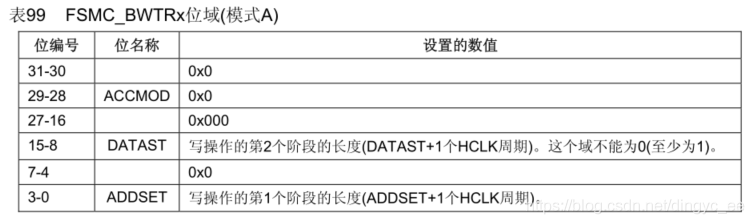 读时序在FSMC_BTR寄存器中进行配置: