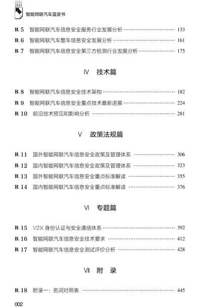 《智能网联汽车信息安全发展报告(2021)》是汽车和信息安全行业落实国家上位法的系统思考,是顺应行业发展新趋势的重要产物,是行业首部全面关注智能网联汽车信息安全发展的重要出版物,极大地填补了行业研究空白。全书共包含总报告、调研篇、产业篇、技术篇、政策法规篇、专题篇6个篇章。主体报告通过系统梳理、详实论述、实际调研等多元化研究方式,为行业管理者提供极具价值的决策性参考,为整车企业、零部 件企业、安全服务商等行业主体提供指导性发展建议和风险规避性提示,为社会公众提供客观公正的行业画像,并发挥信息安全教育和舆论引导作用。