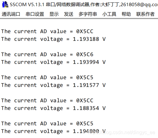 中断服务函数中,当转换完成后,把转换值不断刷新到全局变量中: