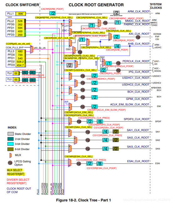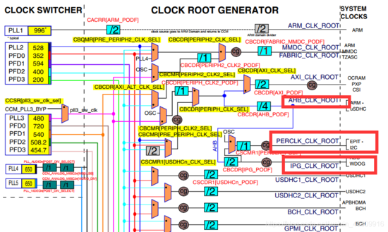 最后要设置的就是 PERCLK_CLK_ROOT 时钟频率,其时钟结构图如下图所示:
