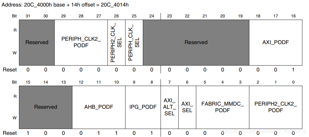 接下来看一下寄存器 CCM_CBCMR,寄存器结构如下图所示: