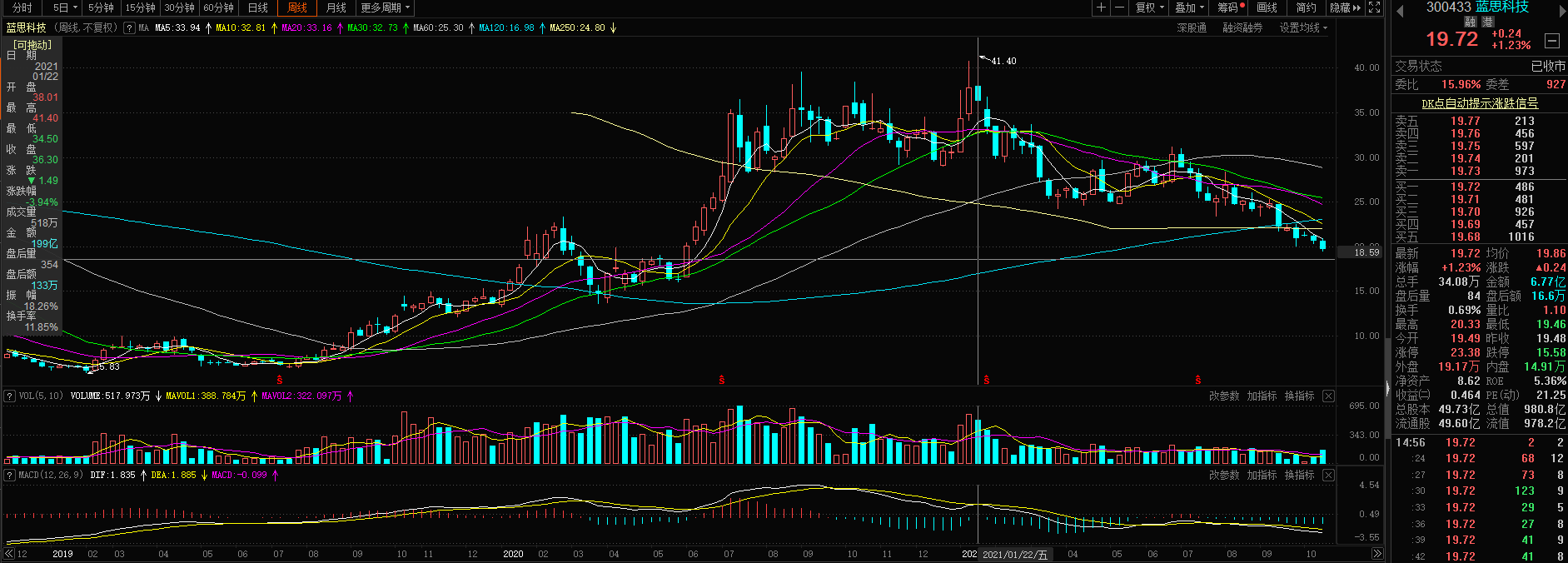 蓝思科技报价19.72元/股,较1月降幅达52%;