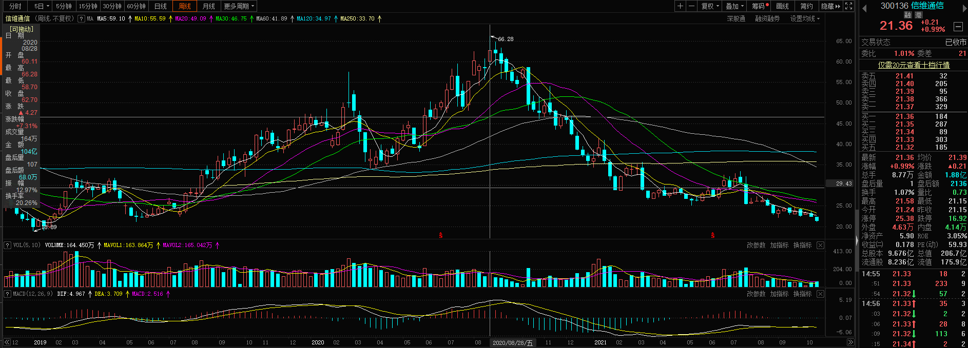 信维通信更是从去年8月到达66.18元/股的高位后,一路跌至如今的21.36元/股,跌幅也高达68%。