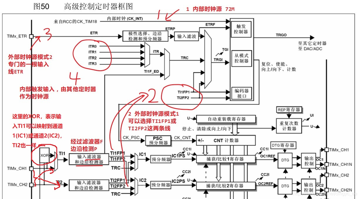外部的GPIO TIx,对应:TIMx_CH1 / 2 / 3 / 4