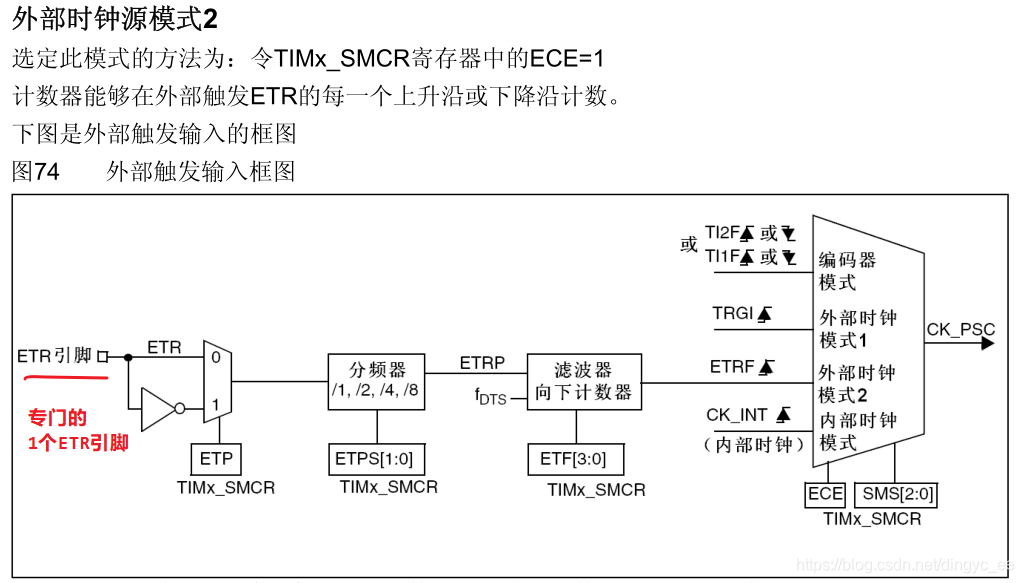 外部时钟模式2:外部触发输入ETR;