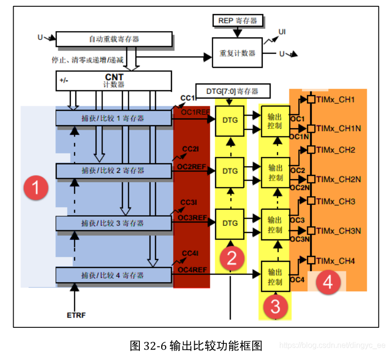 高级定时器结构框图(分成6个部分):