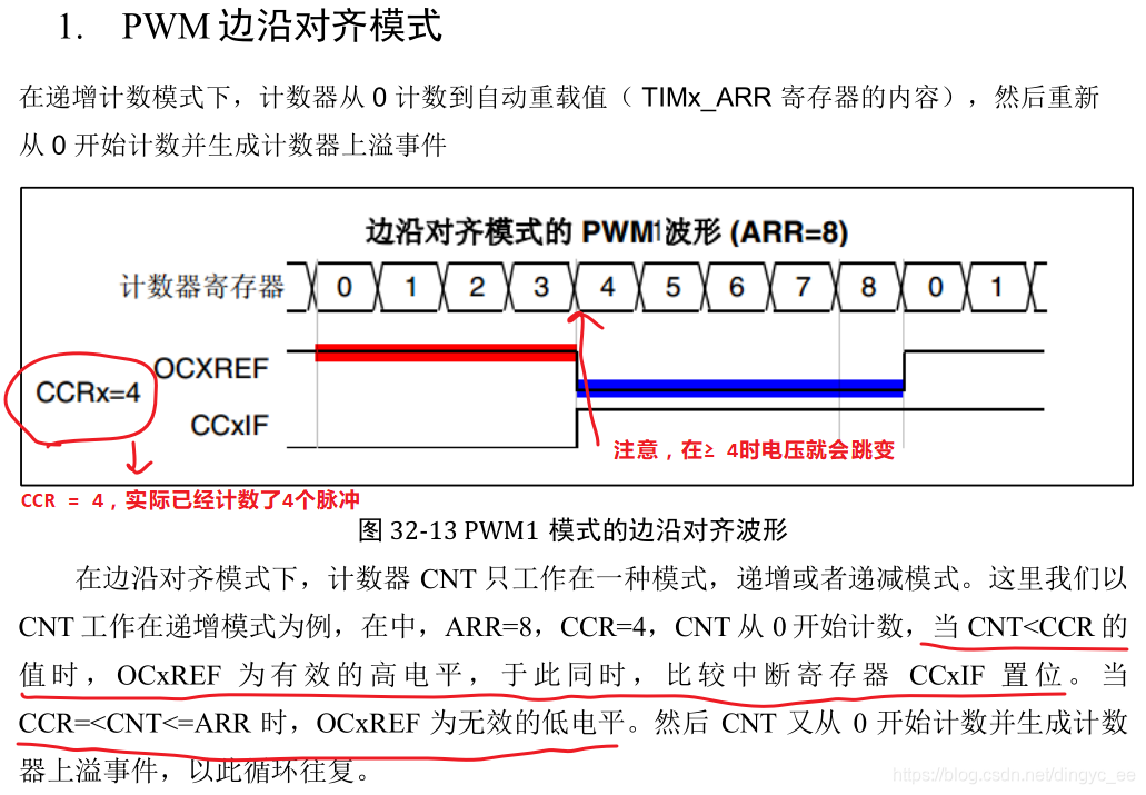 PWM边沿对齐模式: