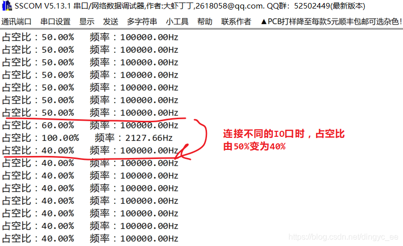 printf("占空比:%0.2f%% 频率:%0.2fHzn",DutyCycle,Frequency);