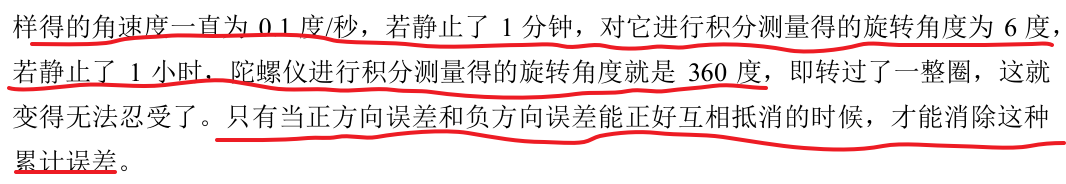 由于器件本身的累计误差,使用陀螺仪检测时就会有一个漂移的现象,这是不可避免的。