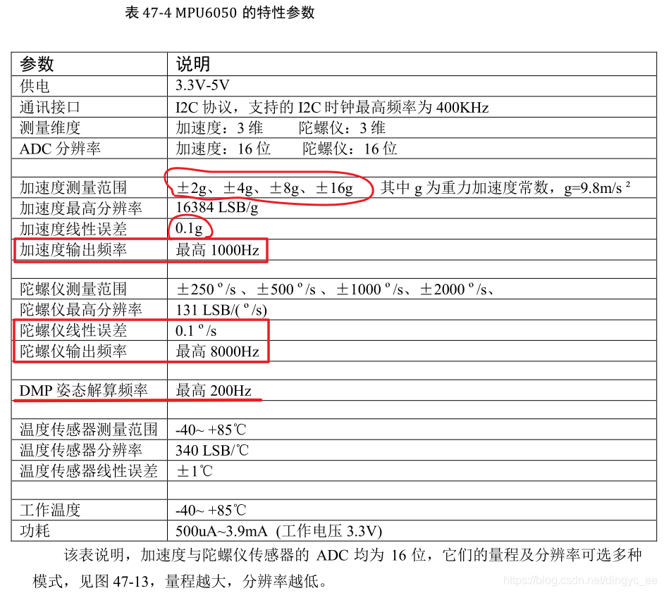 MPU6050特性参数:
