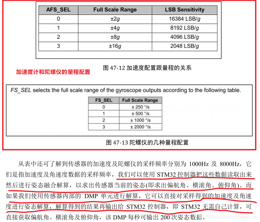 加速度计的输出频率为1000Hz,陀螺仪的输出频率为8000Hz,之所以陀螺仪的频率这么高,应该设设计者考虑到陀螺仪时用于动态时间积分测量的(频率越块精度越高),而加速度计只是测量静态的角度。