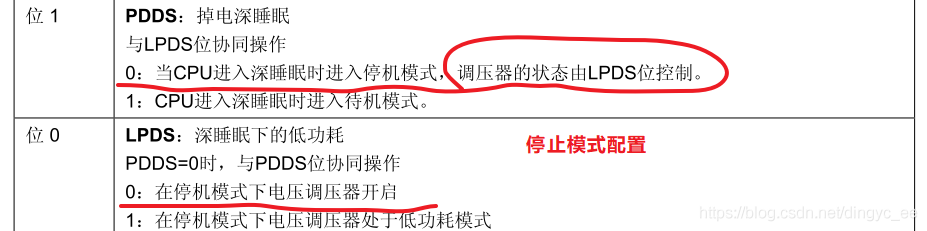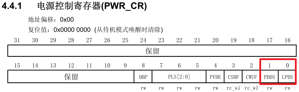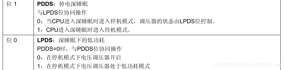 电源控制寄存器,配置停止模式(正常 or 低功耗):