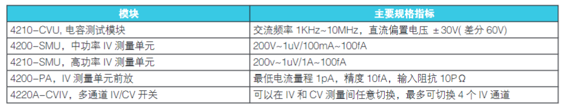 交流电容 C-V 测试模块 4210-CVU 内置交流电压源,直流偏置电压源,交流电流表和交流电压表,使用开尔文测试模式,可以在扫描直流偏置电压的同时,测试不同偏置电压的电容值,且频率范围可调,高达 10MHz。
