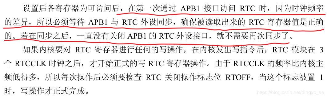 RTC模块和时钟配置系统(RCC_BDCR寄存器)处于后备区域,即在系统复位或从待机模式唤醒后,RTC的设置和时间维持不变。