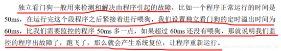 //的程序,此时就会产生系统复位。但是也不排除程序跑飞了又跑回来了,刚好喂狗了,