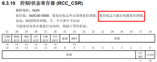 如果独立看门狗 IWDG 产生复位,我们可以从RCC复位和时钟控制寄存器中获取复位原因: