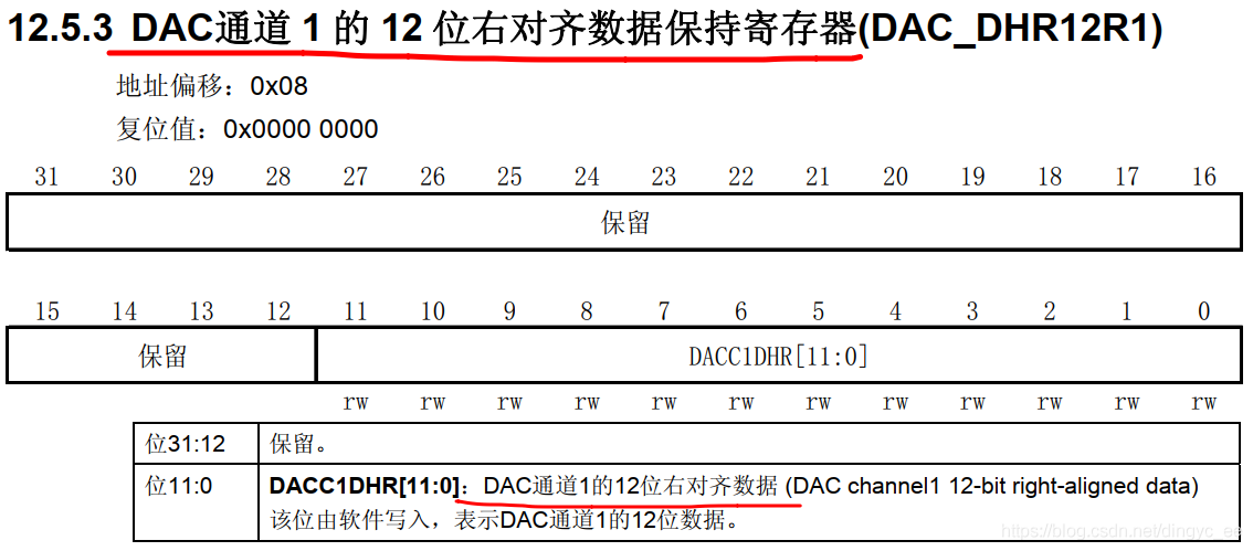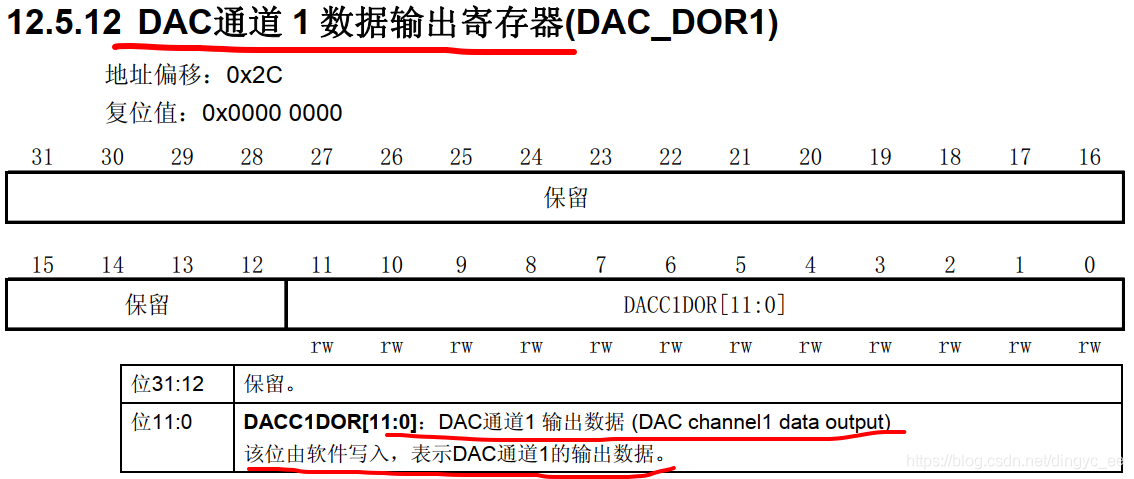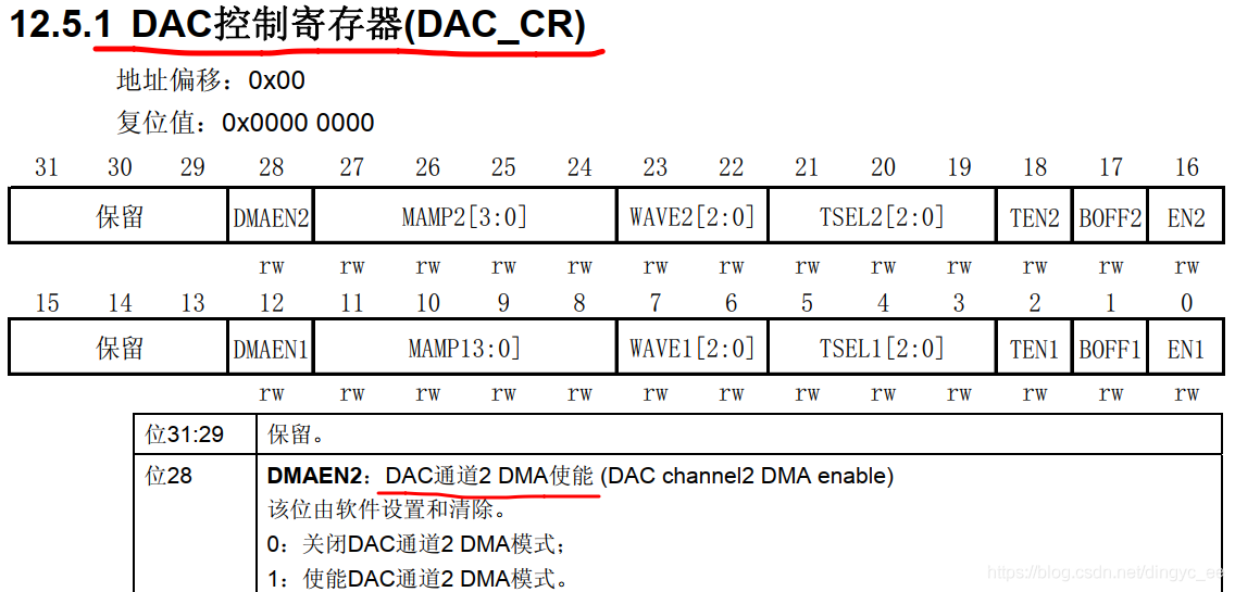 DAC 的寄存器描述: