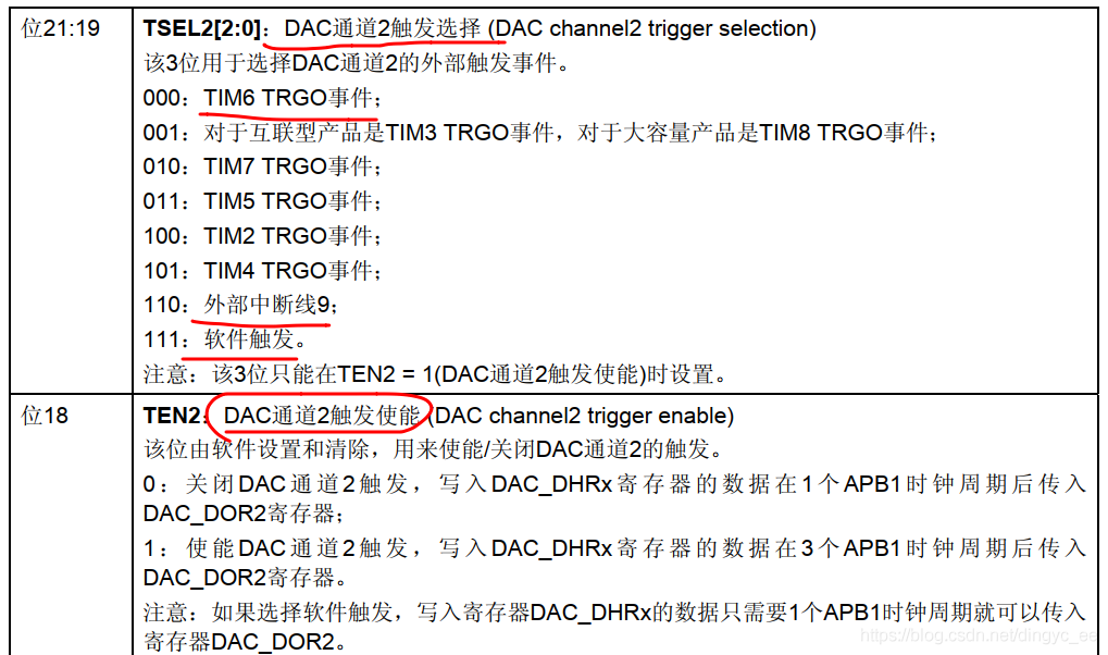 DAC_InitStructure.DAC_Trigger = DAC_Trigger_T2_TRGO; //使用TIM2作为触发源