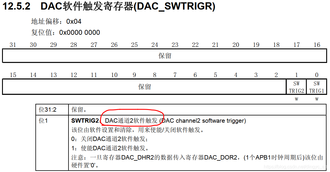 2 DAC 软件触发寄存器: