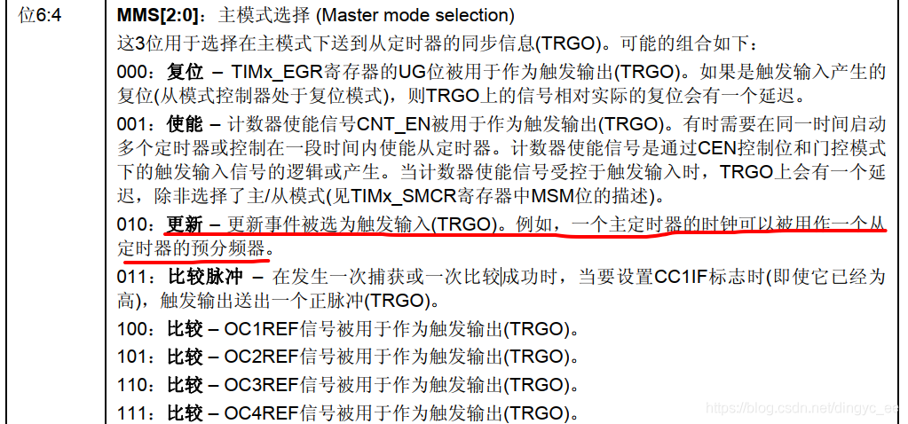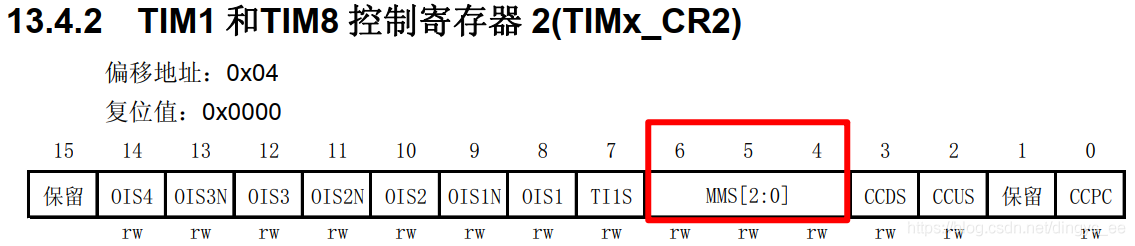 可以看到,其实就是配置TIMx_CR2寄存器的对应位,寄存器描述如下:
