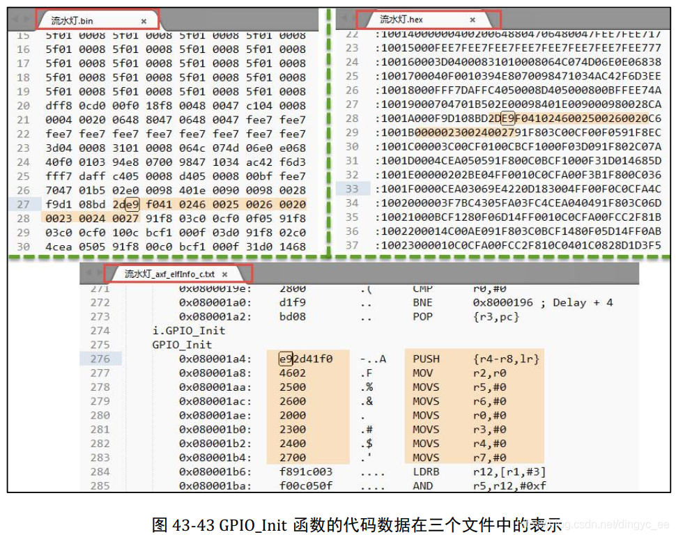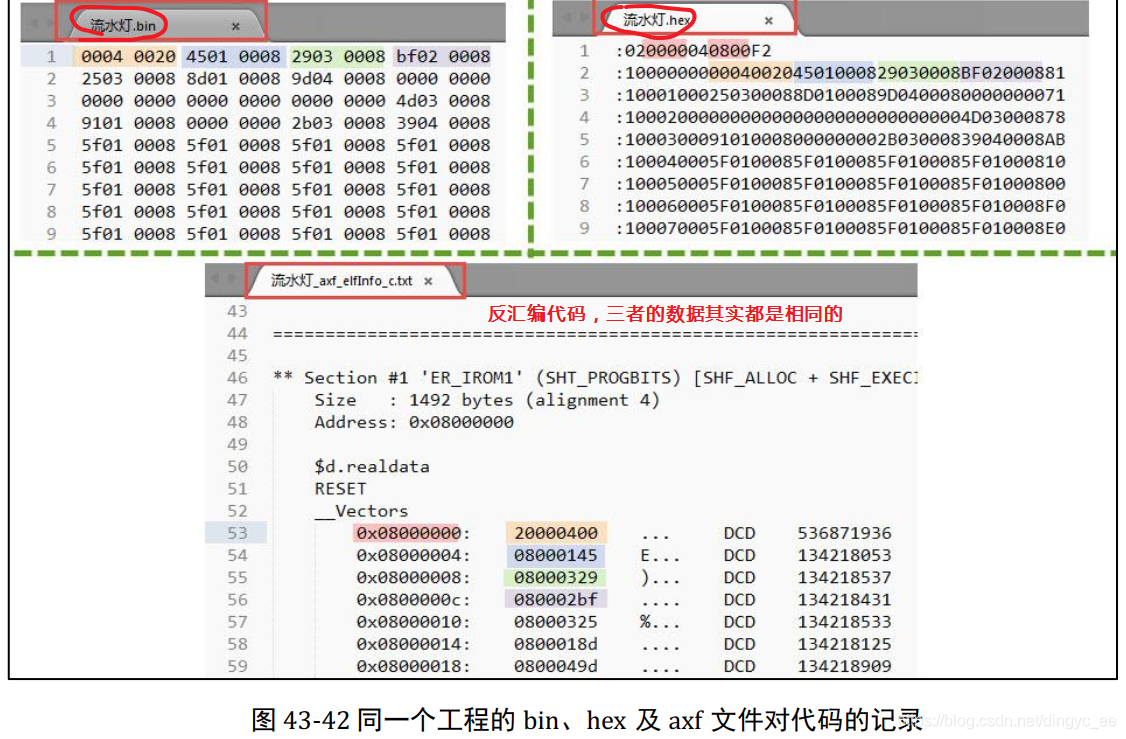 下面是bin hex elf反汇编的比较: