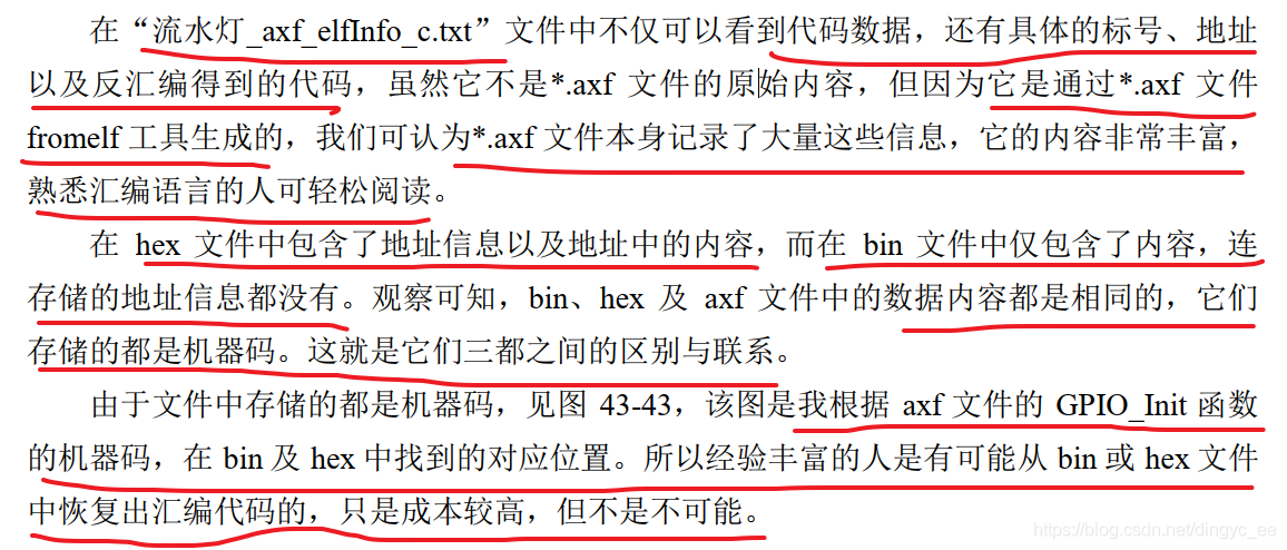 为了更清楚地对比 bin、 hex 及 axf 文件的差异,我们来查看这些文件内部记录的信息来进行对比: