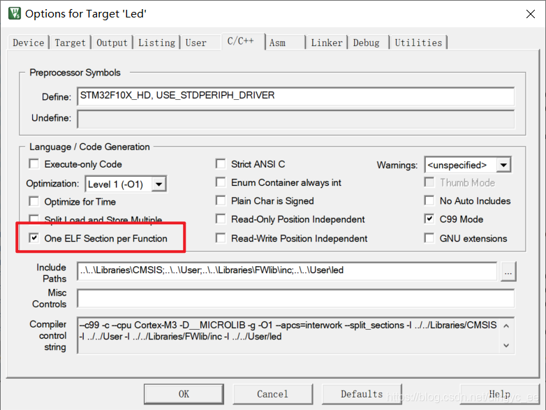 选项One ELF Section per Function对于一个大工程的优化效果尤其突出,有时候甚至可以达到减半的效果。当然,对于小工程或是少有冗余函数的工程来说,其优化效果就没有那么明显了。