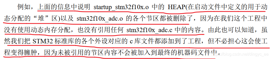 这部分列出了在链接过程它发现工程中未被引用的节区,这些未被引用的节区将会被删除(指不加入到*.axf 文件,不是指在*.o 文件删除),这样可以防止这些无用数据占用程序空间。