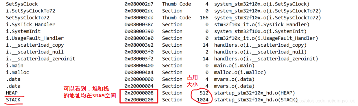 首先是前面的表格数据,可以明显的看到中断向量表和启动文件栈空间: