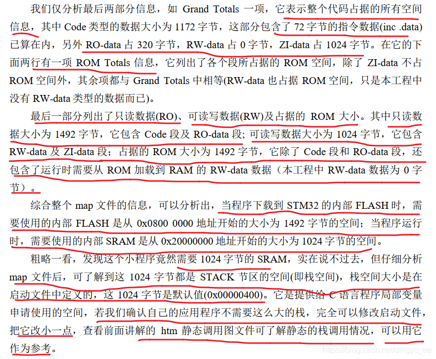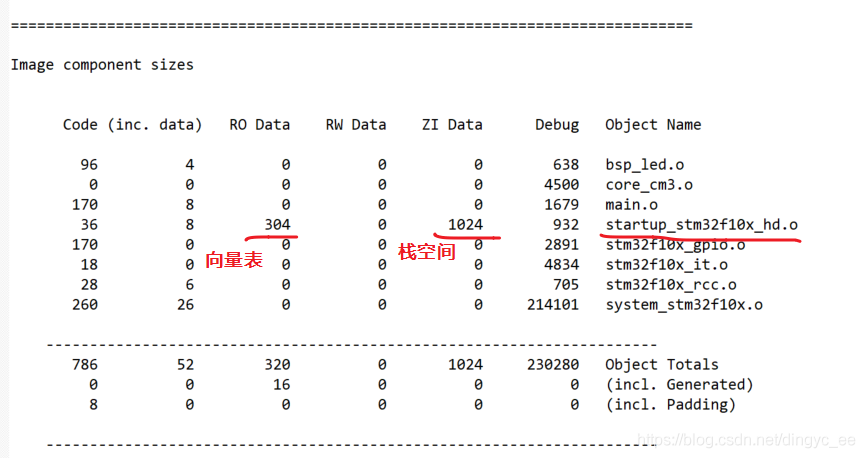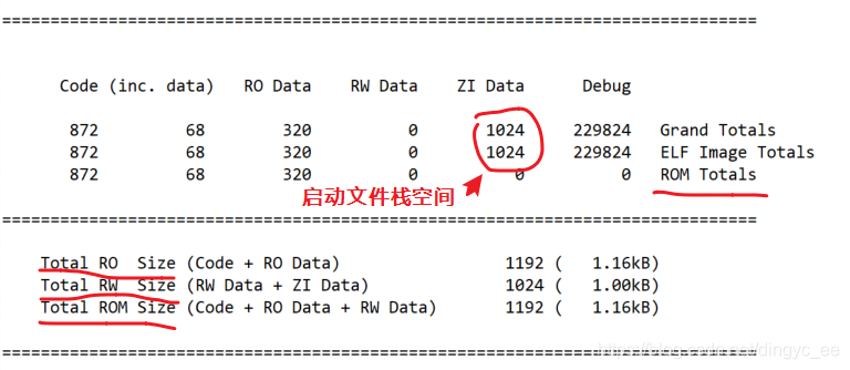 这部分包含了各个使用到的*.o 文件的空间汇总信息、整个工程的空间汇总信息以及占用不同类型存储器的空间汇总信息,它们分类描述了具体占据的 Code、 RO-data、 RW-data及 ZI-data 的大小,并根据这些大小统计出占据的 ROM 总空间。